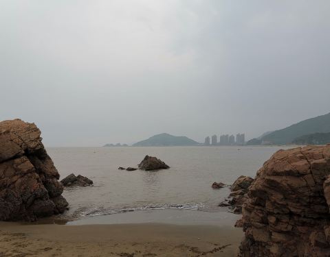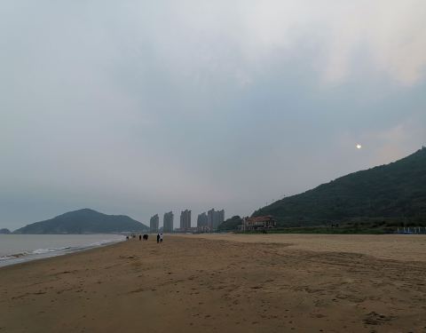 这次旅游,住在了天悦湾,沙滩就在附近,住酒店可以免费去沙滩玩,沙滩的沙子很细腻干净。时刚五月,海风很大,需要穿风衣才不会觉得凉。傍晚涨潮时分,在沙滩上漫步,耳边是澎湃的海浪声,脚下是细软的沙子,身边是欢快的游人,眼前是汹涌的海水,还有或远或近的漂亮海岛,舒适而安逸的感觉油然而生。这是嵊泗旅游绝对值得一看的美景所在。