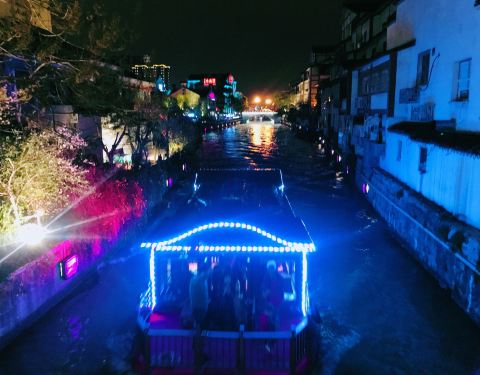 夜晚来到无锡古运河,这景色犹如柳永《破阵乐.露花倒影》词描写的一样: 露花倒影,烟芜蘸碧,灵沼波暖。 金柳摇风树树,系彩舫龙舟遥岸。 千步虹桥,参差雁齿,直趋水殿。 绕金堤、曼衍鱼龙戏,簇娇春罗绮,喧天丝管。 京杭大运河是与万里长城齐名的中国奇观,已有2500多年历史。横贯于无锡市的古运河段以吴桥经西水墩、南门至清名桥这长约6公里的河段最具江南水乡风情。清名桥位于南门外的古运河与伯渎港交会处,是古运河无锡段的最佳景点。