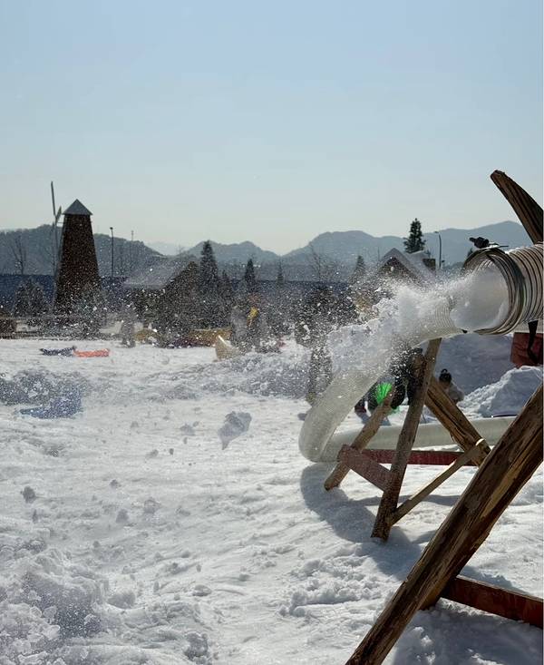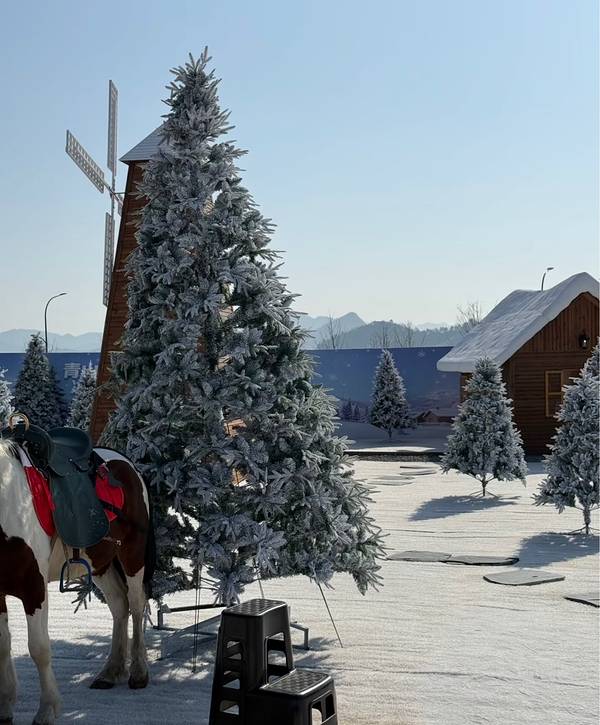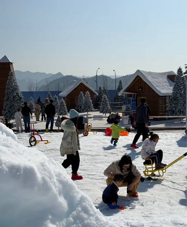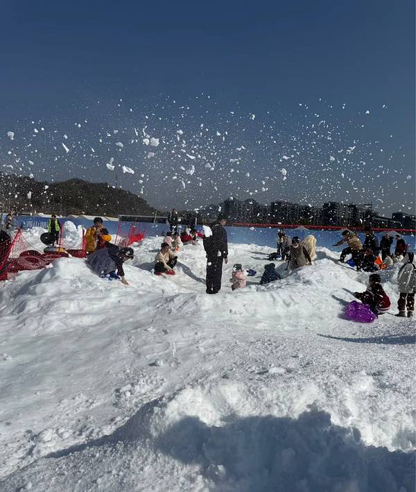 青山湖森林冰雪世界位于秀水公园内,面积达1万㎡,涵盖20余项趣味项目。这里有自带缓冲的超长冰雪大滑梯,孩子们可以坐上滑板顺势而下,感受速度与激情。工作日免费的童话小火车会环绕雪场一周,沿途可以看到阿勒泰风格雪屋、缀满装饰的圣诞树。周末限定的雪地挖宝活动也很有趣,孩子们手持小铲,在蓬松雪层下探寻“宝藏”,收获满满成就感。此外,还有雪地转转、雪地香蕉船、雪地蹦床等项目,让孩子们尽情释放活力。