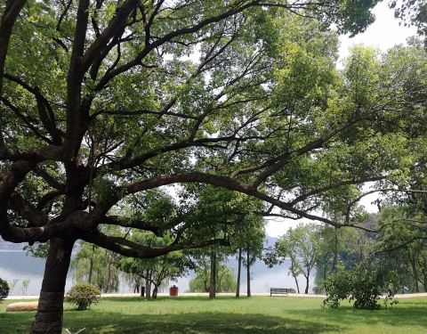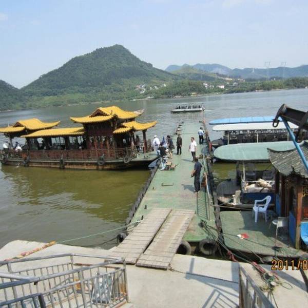 青山湖是位于临安城东四五公里的人工湖,风光清朗,湖面很开阔,并无太多修饰。湖上值得一看的是水上森林,这些奇特的杉树在水中生长,枝繁叶茂。此外,景区内还有烧烤园、小型游乐场,可以玩玩水上降落伞等活动。 怎么玩 游玩的主要方式是坐游船,南面的的琴山码头和圣鹤码头均可购票乘船,同一码头上下。乘游船不仅能欣赏湖面风光,还能游览沿途停靠的水上森林、水上平台等主要景点,上岸游览时间不限,游览结束后凭船票即可继续乘船。 船型有两种,一种是古典画舫游船,另一种为游艇。对于散客来说,明智的选择是等候团队的到来,然后拼船。9:00是琴山码头团队到达的高峰,是拼船成功率较高的时候。其它时段里拼到船的几率也不低,20分钟左右一般都能拼到。 景区看点 乘船到大约40分钟,湖水中水杉林立的高大笔直的树干,是抢眼的景色,也是几乎每个来此的游人都会拍照留影的地方。附近有一个名为“水上森林大闯关”的游乐场,能玩一些诸如水上攀岩、战地滚筒、水上软桥的闯关游戏。另外,湖中间水上平台的一些水上项目值得参与 ,如摩托艇、水上降落伞等,可根据个人喜好参加。 圣鹤码头附近有一块草坪,是一块挺热闹的烧烤园,邻近城市的游客很喜欢在这里烧烤、聚会。这里有出租烧烤炊具、帐篷的摊位,食材也可另付费在此购买。此外,在琴山码头附近的湖面上有座水上舞台,会有小丑、泰国人妖之类的表演(约50元),可前往观看。