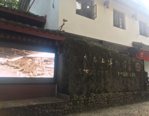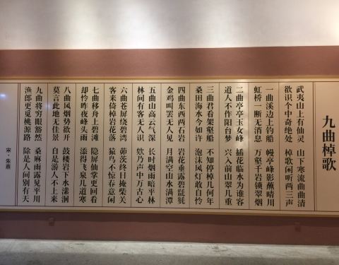 博物馆在武夷宫景区,是免费的博物馆,有两层,可以参观。进门的一楼有很大一面墙,上面写着朱熹的一首,很著名的关于武夷山的诗词。展馆里面还有一些出土的文物,还介绍了武夷山,这里的人文历史文物发掘的情况。