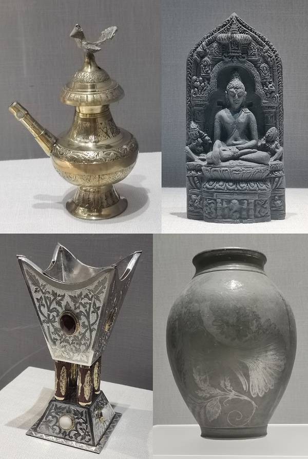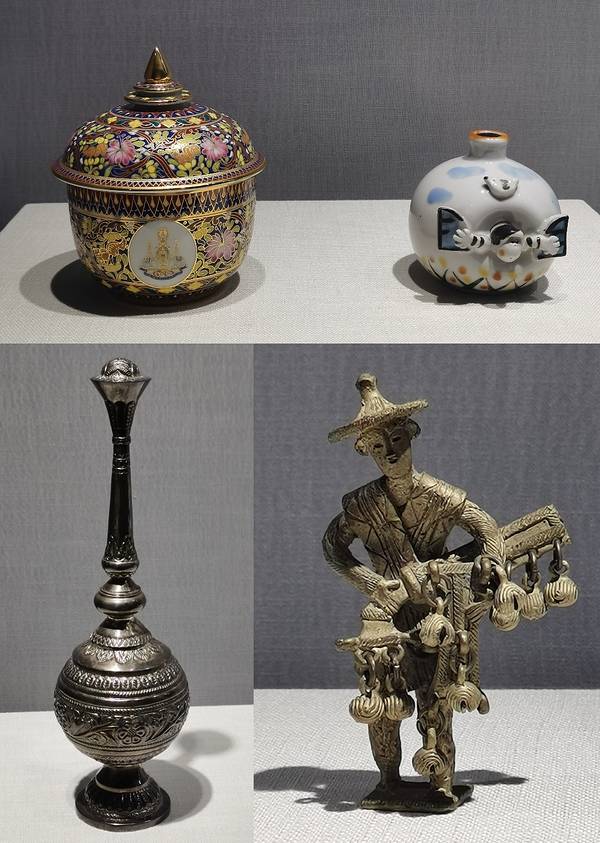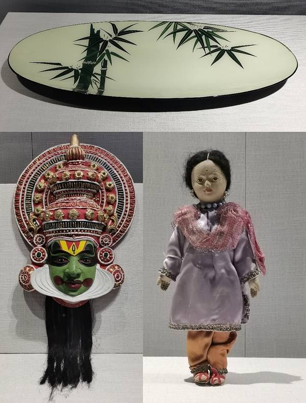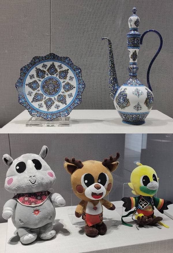 阿富汗的青金石果盘,菲律宾的椰壳碗,马尔代夫的多尼船造型,塔吉克斯坦的孔达尔艺术画,约旦的马赛克画,土库曼斯坦的“汗血宝马”阿哈尔捷金马,越南的一柱寺刺绣,吴哥窟的银烟盒,土耳其地毯…