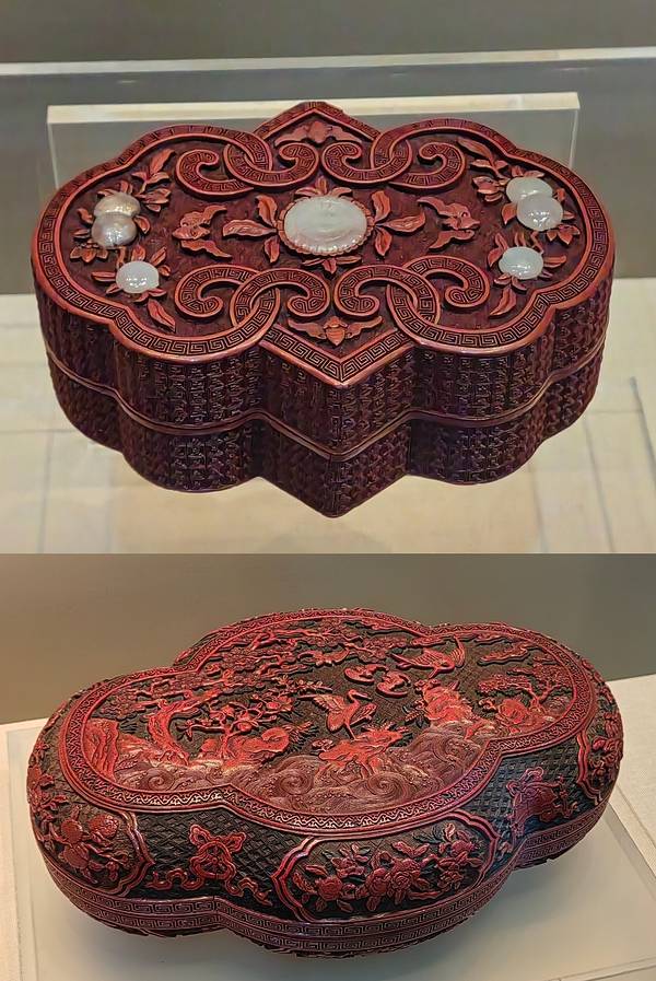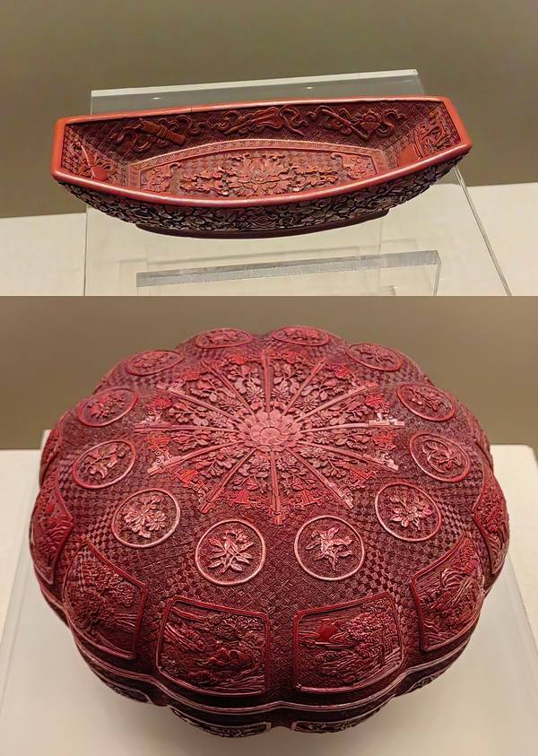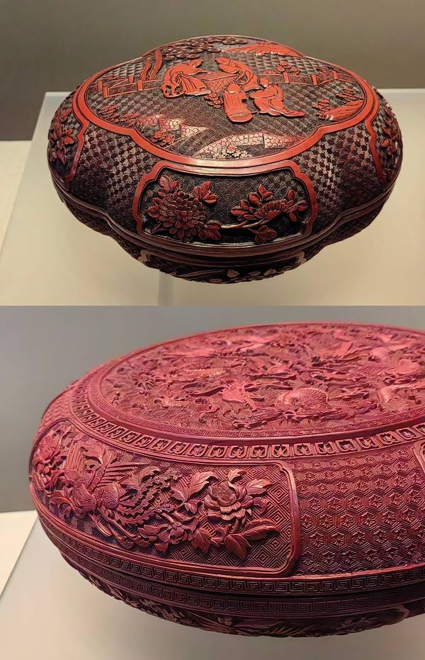 明代新创了戗金填漆,迎来了“千文万华”的时代。明晚期以剔红和剔彩为主,从早期的简练大方、圆润精致转变为崇尚纤巧华丽的新风格。