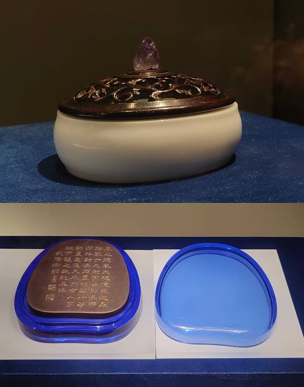 推荐展品,四大名砚之首的松花砚及玻璃刻螭龙纹嵌宝石砚盒,天青色玻璃兔形镇…… 展开