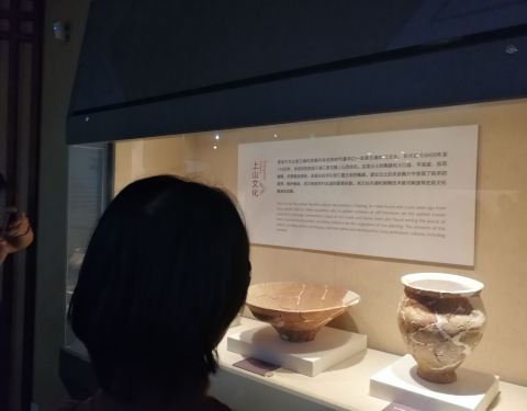 述说历史的部分多数搬到武林馆区了,主馆展出的是陶瓷器。浙江从新石器时代开始,陶瓷文化就非常繁荣,内容丰富。杭州范围就有良渚文化,跨湖桥文化,更不要说浙江范围内的河姆渡,马家浜等等。而从陶到原始瓷到瓷器,越窑,婺州窑,龙泉窑等等,都是历史悠久的窑口,漂亮典雅的青瓷是代表。知道明清青花流行,浙江的瓷器才开始衰落。