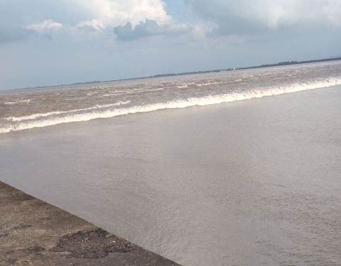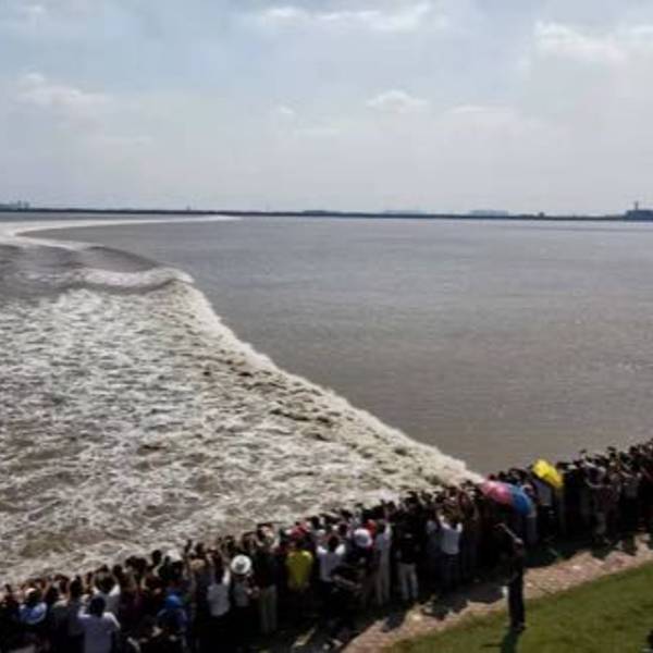一年只有中秋这几天是大潮潮水好看的时候,其他时间都没什么意思,一般下午和凌晨各一次每天有一次小潮
