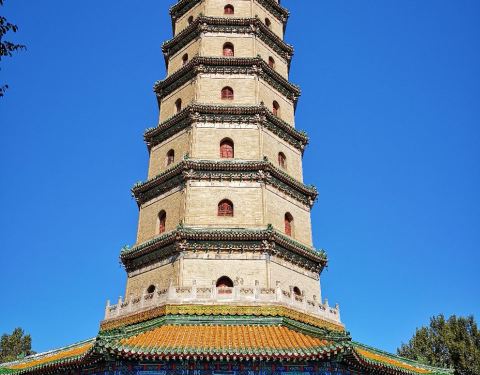 ...仿照杭少F六 和塔而建的 , 高67米是平原区的最高点 , 也是北方 现存保存最完好的古塔之一