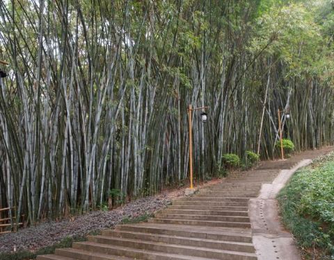 这是一个被各种品种的竹子包围的公园,春天的时候你可以听到竹子生长的声音,人很少,有柠檬桉树种,味道很好。