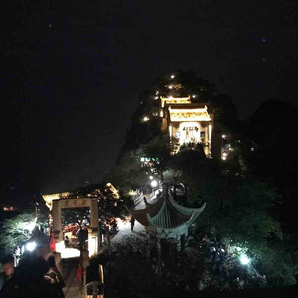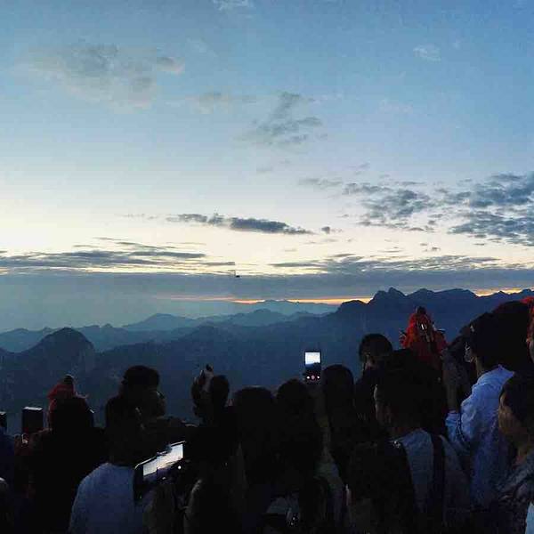 东峰是华山观日出绝佳的地方,我们爬山速度算是比较慢的,用时大概七小时就可以到达东峰峰顶。晚上九点开始爬一直爬到第二天凌晨四点。到了山顶一定要找一个绝佳位置占好,一般就是山顶靠近栅栏的地方最好。那个地方是日出的方向,观日出最佳。所以最好早一点到达山顶占领那里,很晚登顶的话山上早已占满了人根本连走路的地方都没有。