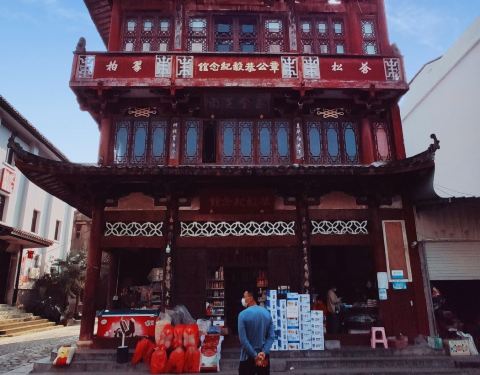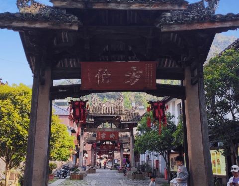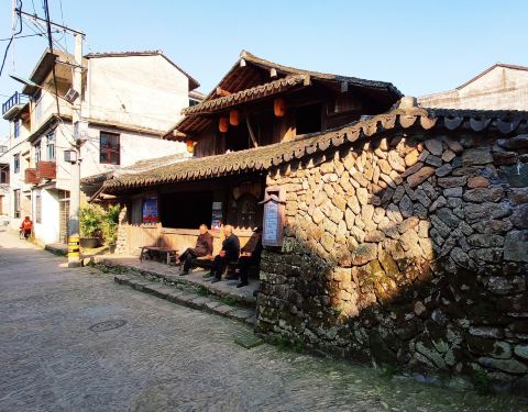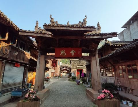 南阁牌楼群位于显胜门景区,在仙溪镇南周村村口。南阁是显胜门景区的入口处,在一条卵石铺成图案路面的直街上,矗立着五座牌楼。高高的大红匾上,分别写着斗大的金字楷书:“世进土”、“恩光”、“方伯”、“尚书”、“会魁”,显示着章氏几代人的功名和地位。“世进土”牌楼,为章纶、章玄应、章朝凤立于嘉靖二十三年;“恩光”牌楼,为章玄梅立于正德年间;“方伯”牌楼,为章玄应立于正德年间;“尚书”牌楼约建立于弘治初年,“会魁”牌楼建于正统四年,都是为章纶而立的。五座牌楼的结构和形制,都是木石结构的三山顶重檐六柱(左右两主柱前后各添一柱支承出檐)的单间形式,脊饰龙吻,高约8米。两根主柱是园角方形的石柱,四根边柱是园形木柱。柱子的基座用条石叠成,高约50公分或80公分。柱梁上的斗拱结构,颇具时代和地方的特色。牌楼群在清初作过重修,但主体部分仍保留着明代的建筑风格。