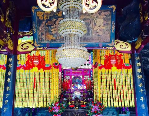 位于仙桥景区。在龙湖的北面,离水库大坝约3公里,是一个曲尺型的奇洞。洞内有三层砖木石结构的建筑,主要用于从事道教活动。二楼设有三块石碑,皆为清代所刻。左右为风景碑,中间的刻有大清光绪二十二年的一道圣旨,题为“钦旌贞烈李姑碑记”,封李玉莲为贞洁烈女。因年月久远,有些字迹已模糊不清。三楼香烟袅袅,中供三清祖师,右侧塑仙姑像。仙姑洞开于宣统元年,咸丰年正式开发。据传,清朝咸丰辛酉年(1861),台州临海李公岙的女儿李玉莲姑娘,避难于洞中,在同治甲子年(1864),为反抗土寇的强抢而投崖殉身,死时趺坐如尘,神情从容。光绪帝知此事后,下旨封她为“贞烈”,后来人们尊她为“仙姑”,并改称此洞为“仙姑洞”。在她殉身的地方建仙姑墓。
