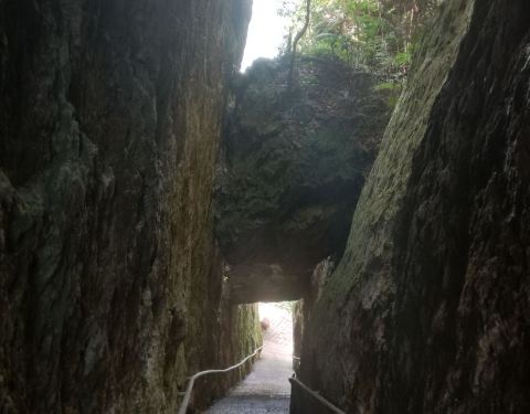 東洞位於南雁盪山東西洞景區的東洞的部分,看簡介說很有歷史了,也就是一個洞有門牌有題字,像是個必經之口,東洞景區一路往上爬會經過很多景點,其中在比較高的位置有個一線天,說實在話真的是走到哪都有一線天,也就是天空被石頭遮住剩一個小縫,我們總習慣稱為一線天,南雁盪山的一線天在比較高的位置,在去聖峰寺之前,相較於各種掛名的一線天,我認為南雁盪山的這個還是比較值得走的,在巨石的中間有個陰涼的小道,有點陡,走在裡面相當的涼快,往上看往下看都別有一番風味,對於一堆所謂一線天來說,我認為還是好多的