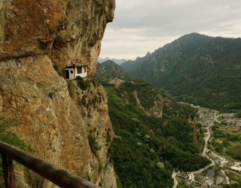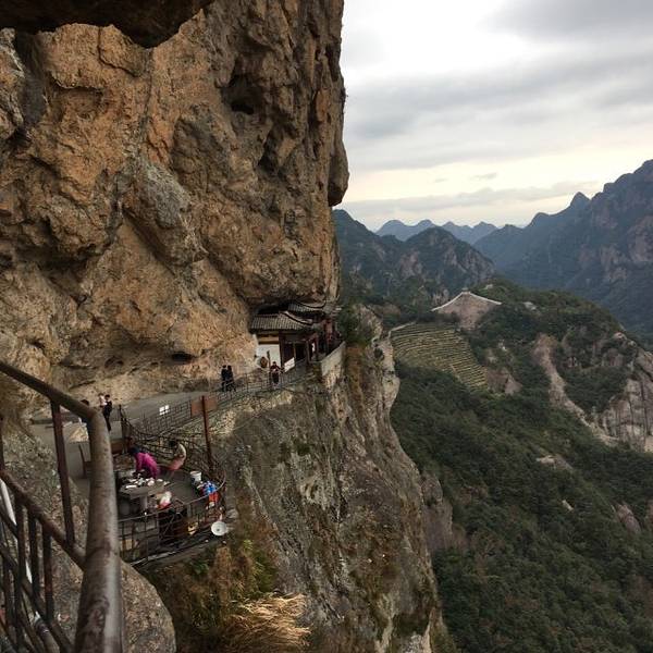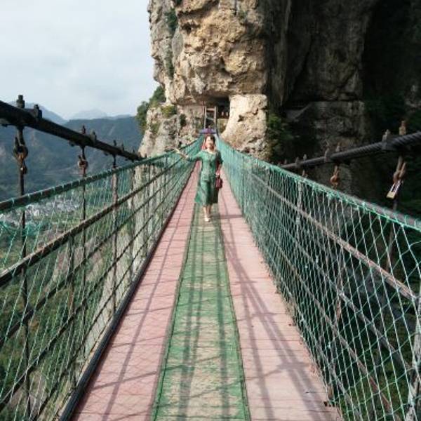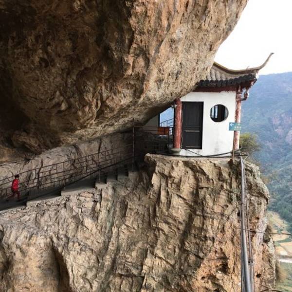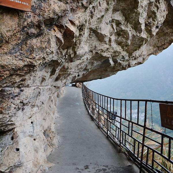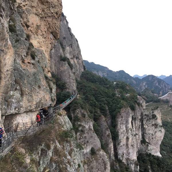 悬于半山的栈道其实是在悬崖绝壁中开凿出来的,让你在云端体验行走于半空的奇妙感觉,比较刺激