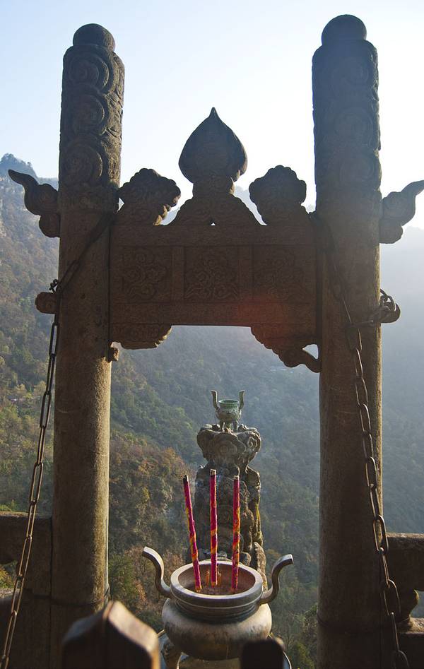 武当山著名景点,在万寿宫附近,有一凸出悬崖的龙头,古时信徒需膝行点香而得名,但百尺高楼,悬崖强风,稍有不慎便是粉身碎骨。相传自古死者不计其数,直到清代禁令方止。今天的龙头香延续清代禁令,不过求香之人仍可隔着栅栏遥拜。看着那些虔诚的人,不能不感叹一声。