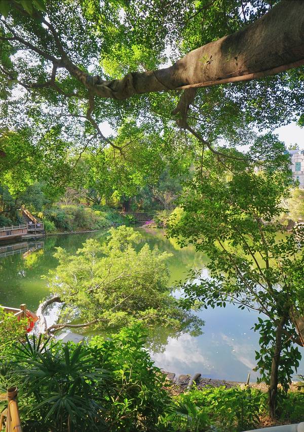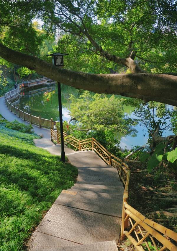 屏山公园的秋冬之美,胜在山林景致的层次与温婉,契合福州独有的亚热带秋冬气质。这里没有北方的萧瑟冰封,秋日的绿意依旧是主色调,古榕、香樟的浓荫层层叠叠,气根垂落间尽显榕城特色,只在道旁、山腰间藏着秋的巧思:乌桕叶渐次红透,零星点缀在浓绿间如霞似火;枫树褪去翠绿,浅红、橙红的叶片错落交织;银杏谷的金黄杏叶随风飘落,铺就细碎的金色步道,微风拂过,落叶簌簌,踩上去沙沙作响,是独属于秋日的温柔。野菊在灌木丛中簇簇绽放,嫩黄小花吐着淡淡清香,三角梅则依旧嫣红盛放,为秋景添上一抹明丽。步入冬季,山林更添清寂,薄雾如轻纱笼罩山间,步道在晨雾中若隐若现,榕树的枝叶沾着晶莹露珠,清冷却不凛冽;山巅与步道旁的梅林是冬日主角,花苞缀满枝头,待深冬时节便凌寒绽放,疏影横斜,暗香浮动,为静谧的山林添了几分生机,漫步其间,满鼻皆是清冽梅香,沁人心脾。