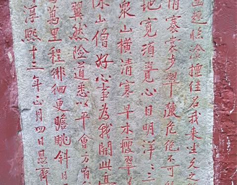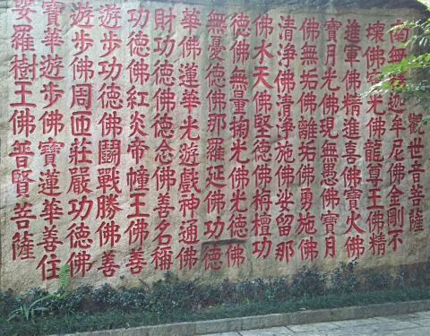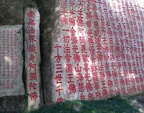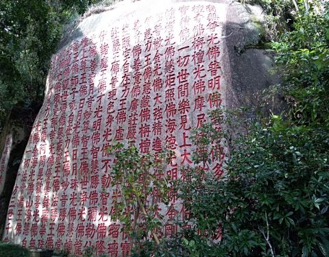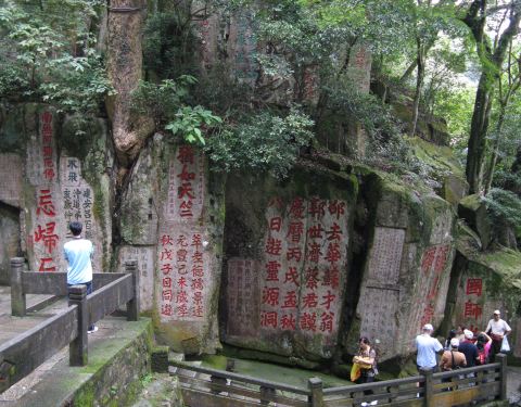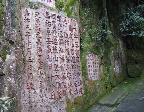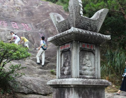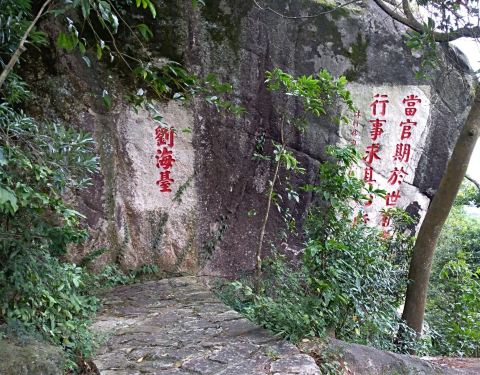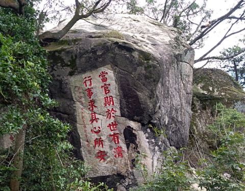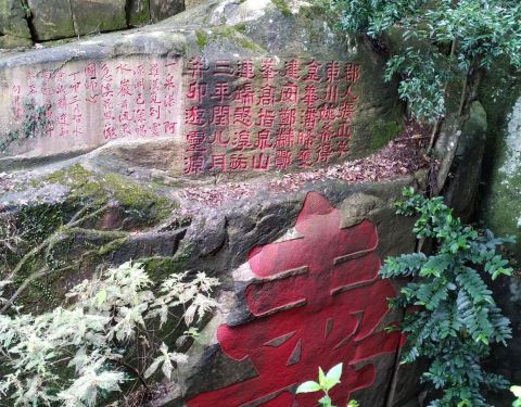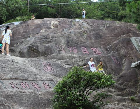 去鼓山登山看到一片的石刻都是一些文人的字迹。留在石壁上流给后人。也城为鼓山的名胜古迹。
