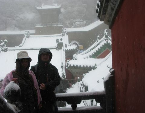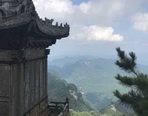 攀登主峰天柱峰沿途经过三道天门,直达山顶世界文化遗产金顶金殿古建筑群,相当古朴的殿堂楼阁,把整个山头都覆盖了,与山石浑然一体,十分雄伟壮观!难得的是当时正值云雾弥漫,强烈的山风吹动了大片的乳白色的云雾不断从建筑群掠过,若隐若现仿佛仙山琼阁,真的太美了!
