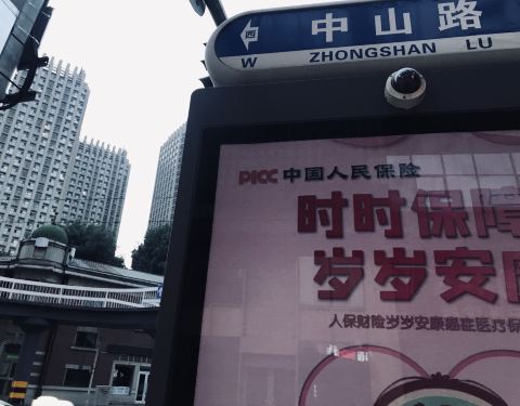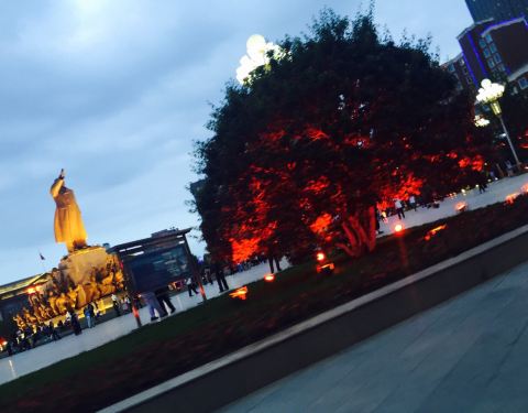 路上注意安全哦,这个地方车流量比较大,坐在车里拍的照片。就在医院旁边,医大一院,广场是沈阳的一个地标性建筑,可以来溜达一圈