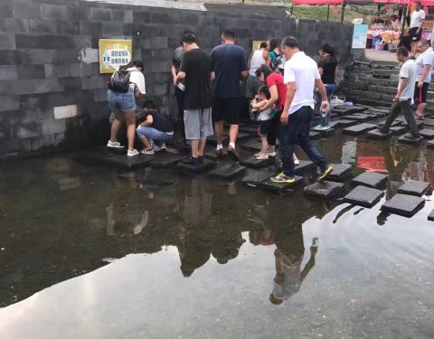 ...有人玩水,还有卖水桶的,师傅说其实风景区所有的用水都来自这里,所以我在酒店喝自来水也是可以的喽