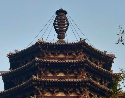 中国的塔一般都是砖石建造的,这个塔用了不少木头所以称为木塔。占地面积不大,主要就是这个塔。免费开放