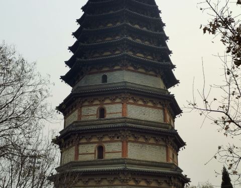 凌霄塔是一座砖木结构的九层楼阁式塔,平面呈八角形,高41米,矗立于八角形台基之上