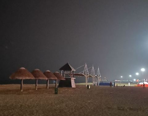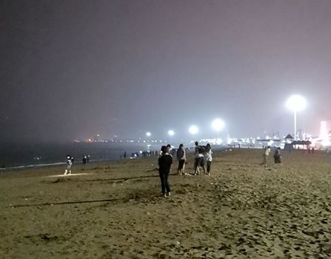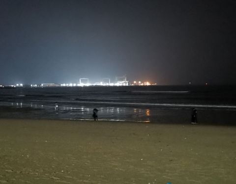 万米沙滩位于山东省海阳市,就在所入住的酒店马路对面。这是一座免费开放式的公共沙滩,由于到那已经晚上八点多钟了,对于万米沙滩的景致已经看不太清楚了,但其规模及气势还是留有很深的印象。
