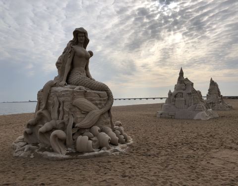 海阳万米沙滩位于海阳市最南端,分为三个部分:亚沙会场沙滩区、沙雕公园沙滩区和凤翔滩。亚沙会场沙滩区从连理大桥往西,水质清澈,但游客很少过去。沙雕公园沙滩区是万米沙滩的中间地带,从连理大桥往东,沙雕...