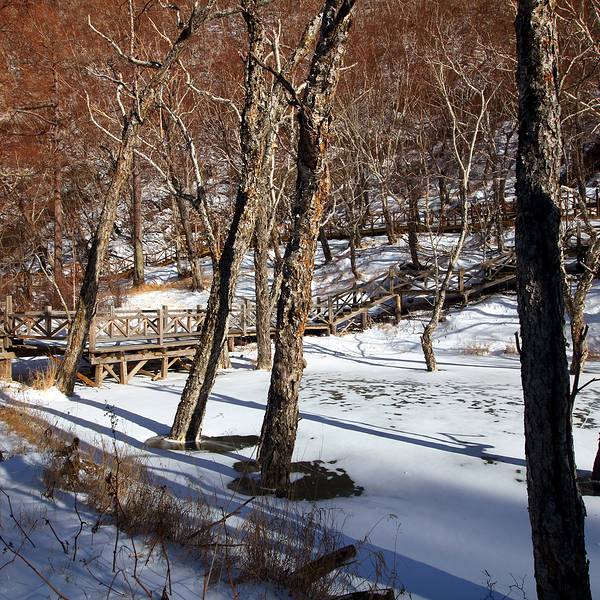 木栈道甚滑,摔了几跤。从长白山下来,转去小天池
