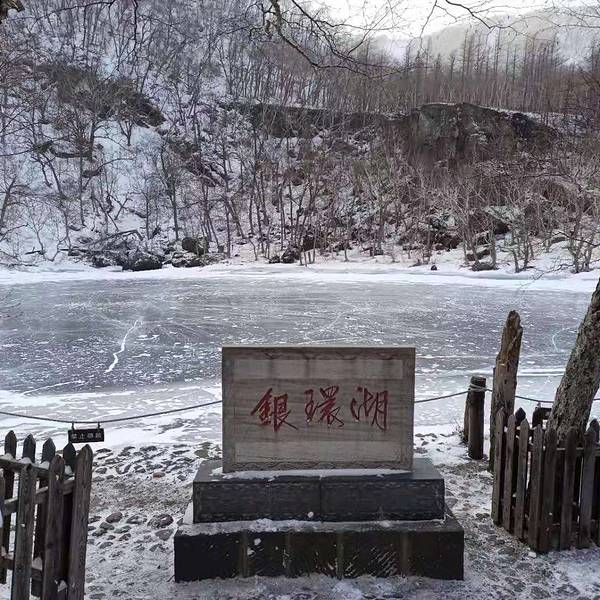 从长白瀑布停车场坐环保车行驶五分钟可到银环湖,银环湖是一潭宁静的圆形小湖泊,水面倒影着蓝天白云与树木的优雅姿态,景色唯美。虽然称为银环湖,但它的景色与磅礴大气的天池是迥然不同的风格。 银环湖与只有出水口没有进水口的天池相反,银环湖只有进水口而没有出水口。不过银环湖这里的景色比较单一,在此逗留几分钟就可以沿栈道折回,沿途可见二道白河在狭窄的峡谷中奔流,约行走15分钟后可到绿渊潭的入口。