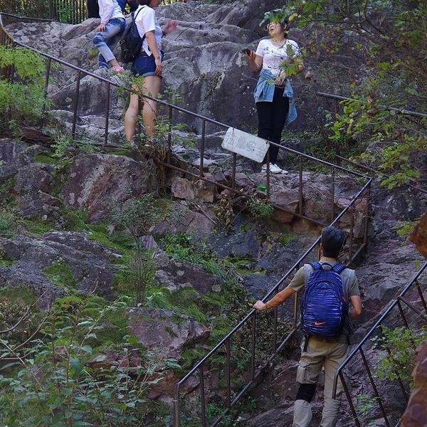 这云岫谷景区也不知道有多大,有多远是个头儿?路上遇到一些返回的游客也都没有走到尽头。他们都说前面有个“飞流直下”的瀑布,好像那里是个整个景区标志性的景点?于是我们就沿着类似的溪谷风景一路前行,路过大大小小几个瀑布, 比如 :“五彩三叠”等等。