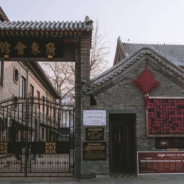 在天津老城厢距离鼓楼仅仅几十米的地方,有一片沉静、古朴、韵味十足的传统建筑,这就是广东会馆,它是天津市至今保存最完整、规模最大、装修最精致的清代会馆建筑。