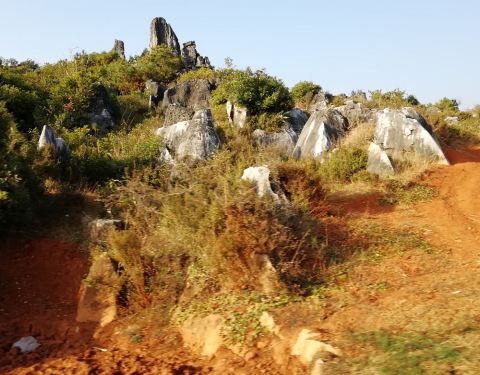 奇了怪了,这个地方,我按照定位导航,打车过去的,怎么就没找到呢,已经到了离石林县城很远的地方,还经过了一个看似很贫穷的小村子,到了那个地方,竟然什么都没有,很失望的。不过,好在帅气的司机带着我在景区外面绕了半圈,想看的风景都看到了,也不遗憾了。虽然花了差不多的钱,还兜了半天风,相比花那么多钱去手一甩买那死贵的石林景区门票,那些人态度还很让人不舒服,我觉得很值,起码心情好。如果又还想去李子菁石林探索美景的后来人,希望你们能找得到吧,有机会看到你们的游记,我也好知道自己为什么没有几乎看到这神秘的石林美景。。。 这些图片是路上遇到的风景。此行,值了。