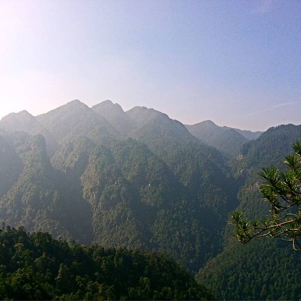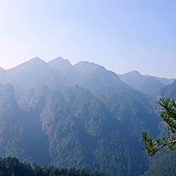 井冈山五指峰因多座山峰层叠在一起,远观像人手握而隆起的形状相似而得名。老版一百元背面图像就取自这,大家对比一下像不像呢?右边斜着的像是大拇指。