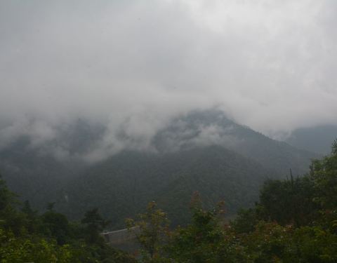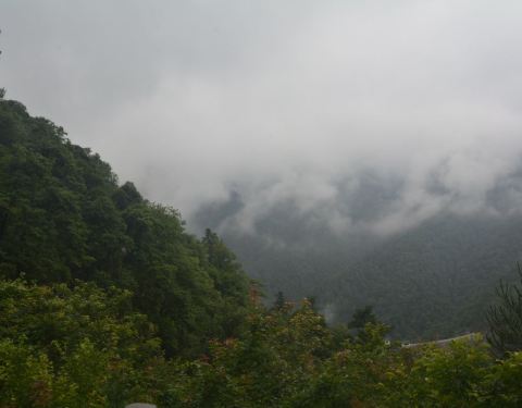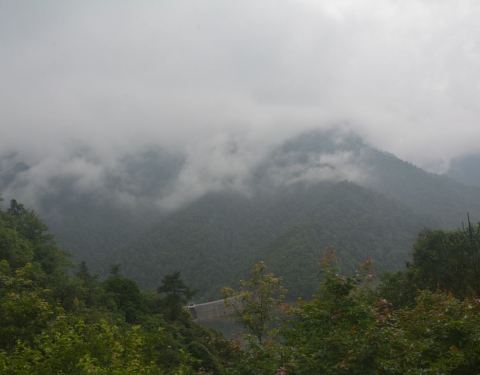 五指峰因五座山峰相连,远远看去,形状像五个手指而得名。可惜,我们辛苦的从宾馆走过去后,发现云雾缭绕,难见真容。云雾特别大,几乎是从山腰开始,一直到山顶,只能看到山下的一个小水库。亲们,来的时候,一定要看一下天气情况,天气晴好,必然风景如画。
