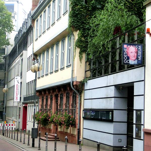 歌德故居与歌德博物馆毗邻,1749年8月28日,德国诗人约翰•沃尔夫冈•歌德出生于此,并在这里度过了他的青少年时代。《少年维特之烦恼》和《浮士德》的序章部分都是在此完成的。 故居一如德国旧时民居,颇不起眼,二战时这座建筑几乎完全被炸毁,战后人们忠实地还原了故居的原貌。战争时悉心移到别处的珍贵家具、艺术真品、富有价值的摆件、书籍、画像以及手稿,战后都被移送回来,目前它们都在曾属于它们的位置上安安稳稳地呆着。 故居概览 故居入口在房屋后门的黑色铁门处。歌德故居共有四层,一楼设有大厅、黄色房间、蓝色房间和厨房。大厅内放置着衣架、法兰克福式木柜和保险箱,侧手边的暗门通往地下酒窖。大厅左侧的黄色房间(Yellow room)里收藏有少年时期歌德的画像。蓝色房间曾作为餐厅使用,装饰有巴洛克式的圆形餐桌、镜子,窗边还摆放着歌德母亲当年常使用的缝纫机。 会客厅 沿着雕饰精美的楼梯拾级而上,便可来到二楼,这里主要设有会客厅和音乐室。会客厅十分宽敞,用典雅的红色天鹅绒装饰,歌德十分推崇中国文化,会客厅的壁纸充满了浓郁的中国风情,因此会客厅也被称为“北平”厅。当年歌德就是在这里与德国以及欧洲各国慕名而来作家、诗人以及戏剧家等谈笑风生。音乐厅也是爱好音乐的歌德一家时常流连的地方,这里存放有一架古老的击弦古钢琴,周围的墙上装饰有歌德家族成员的画像。 歌德出生的房间 歌德出生的房间位于三楼的东北边,窗边的报刊登有歌德出生后接受洗礼的消息,下方有歌德本人亲手标注的出生日期“1749年8月28日”。此外,房间内还悬挂着歌德晚年时的肖像。三楼的图书馆和画廊也很值得一看,藏书达到2000册。这些书籍都完好地保存着,微微发黄,很有年代感。歌德也十分喜欢收集艺术藏品,在三楼的画廊可以看到德国和荷兰画派诸多佳作。 书房 故居四楼的书房放置着歌德当年使用的高脚书桌,歌德在他狭窄简朴的工作室里写出了《浮士德》、《威廉·麦斯特学习年代和漫游年代》以及大量诗歌。与书房毗邻的房间存放有木偶剧院,曾在歌德的《威廉•麦斯特学习年代和漫游年代》中出现。四楼北边设有歌德故居展览,可以看到关于这座建筑的文献资料,法兰克福的风土人情,歌德在法兰克福居住时的手稿、笔记、书信等珍贵资料。