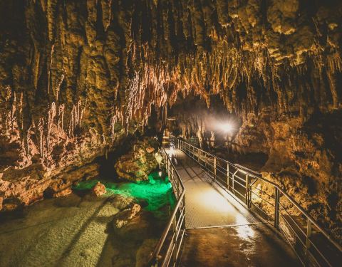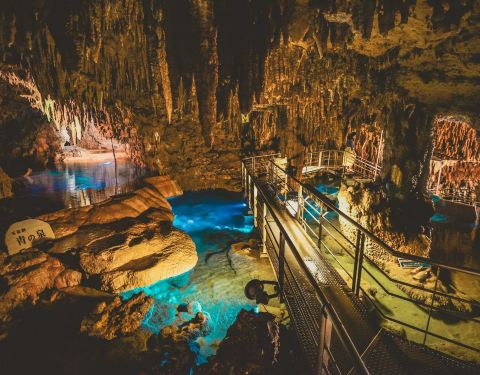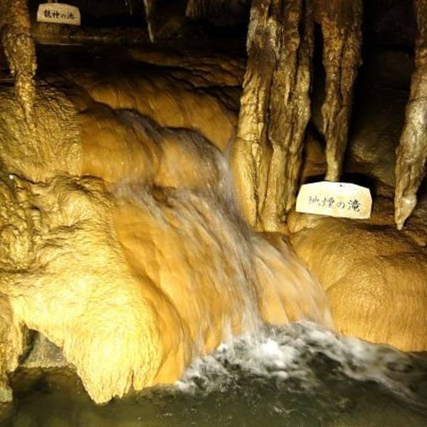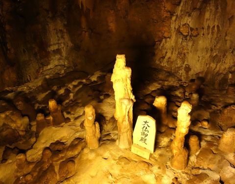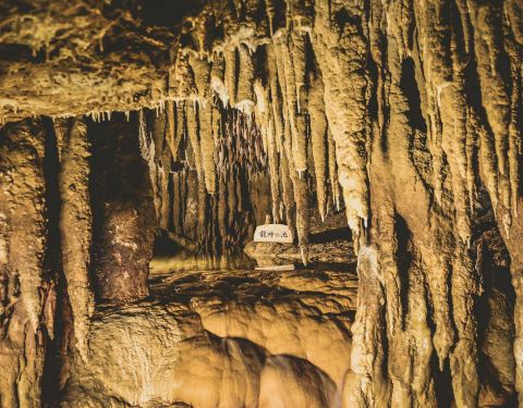 全长5公里,是日本最大规模的钟乳洞,公开参观的部分非常壮观。