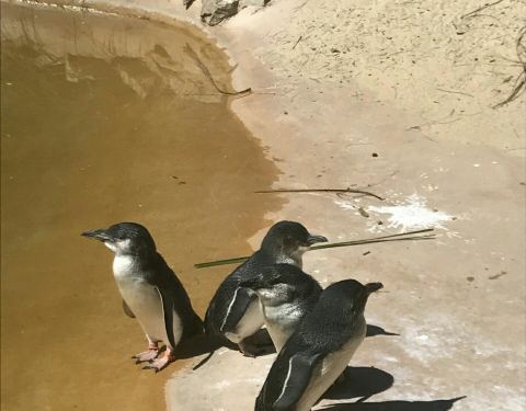水濑和仙企鹅都很可爱,用围墙挡着…你可以现在就预定,在那还可以待通宵…白天有狗狗在散步你可以触摸它们跟它们拍照。还看到了袋鼠不过好像袋鼠不高兴的样子。动物园比较小。