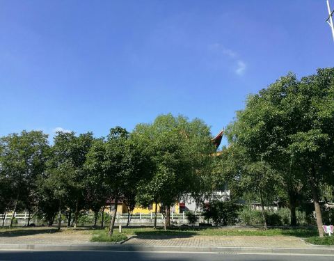 到盐官观潮胜地公园看钱塘江潮,看见了与公园一墙相隔的小普陀禅寺,寺庙看起来挺漂亮,有心进去看看,走到头看见门是关闭的,进不去。