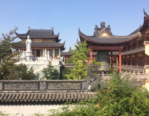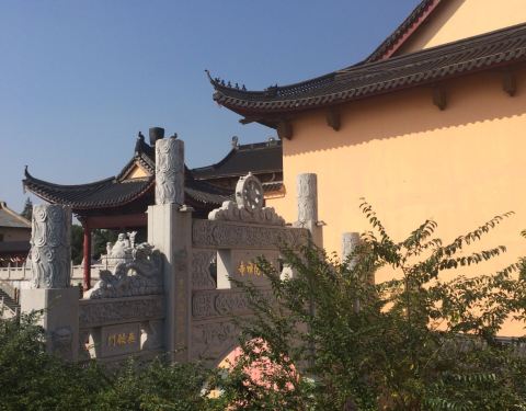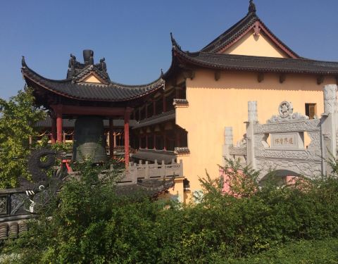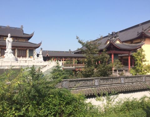 到盐官观潮胜地公园看钱塘江潮,看见了与公园一墙相隔的小普陀禅寺,寺庙看起来挺漂亮,有心进去看看...