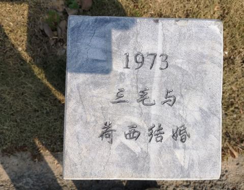在三毛祖居的花海里的这三块青石碑,记录了三毛与荷西的爱情,荷西与三毛在1973年结婚,1979年荷西去世,三毛对荷西的爱和思念是那么的真实而深刻。