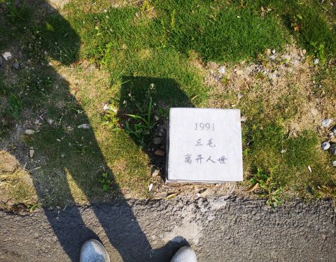 在通向三毛祖居二三百米的路上,很用心地在贴近地面的地方横立着小青石碑,上面按年代分别记载着三毛...