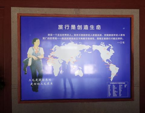 在三毛祖居的展示厅,展示的第三部分是《万水干山走遍》,三毛爱旅行,非常爱,她以游客之心对大自然的敬畏、感叹,她说,风吹过来,吹掉了心中所有束缚,那是一种无形的感化和熏染。