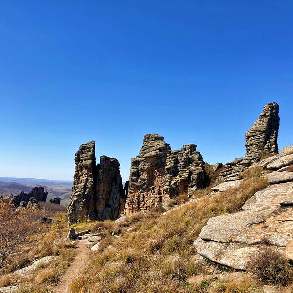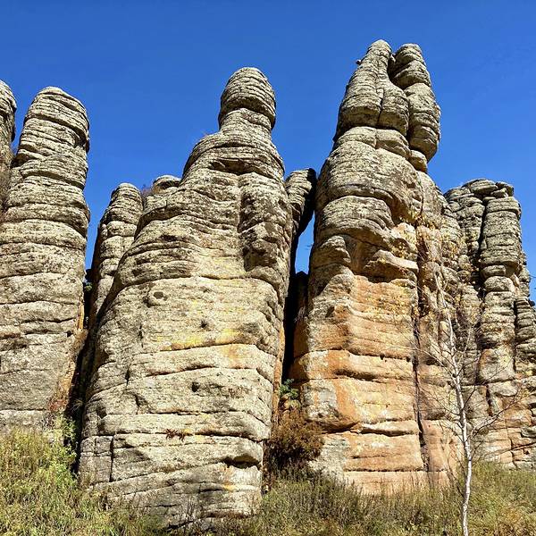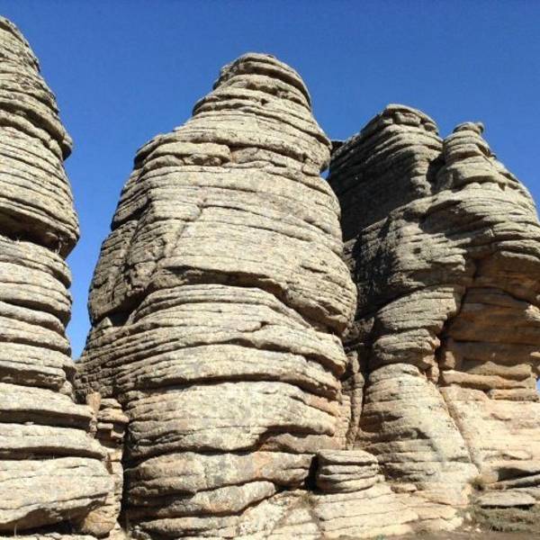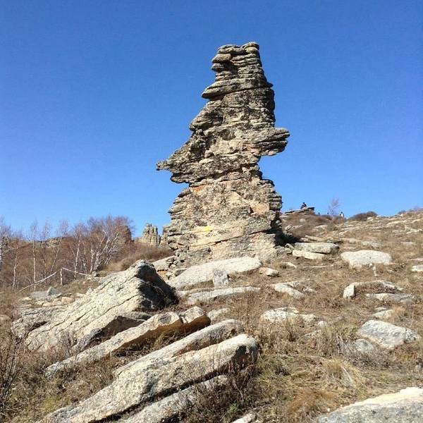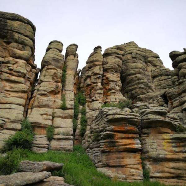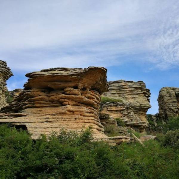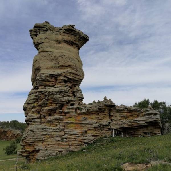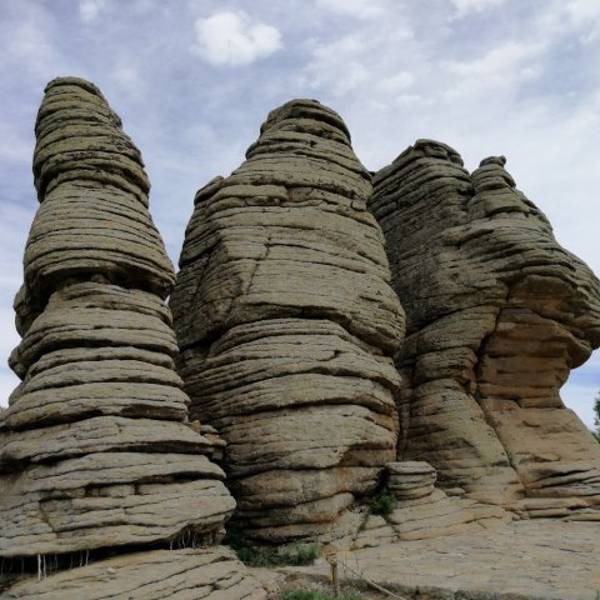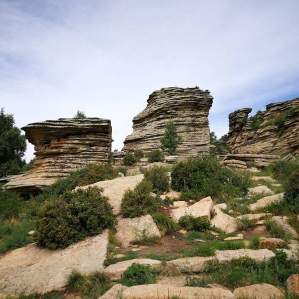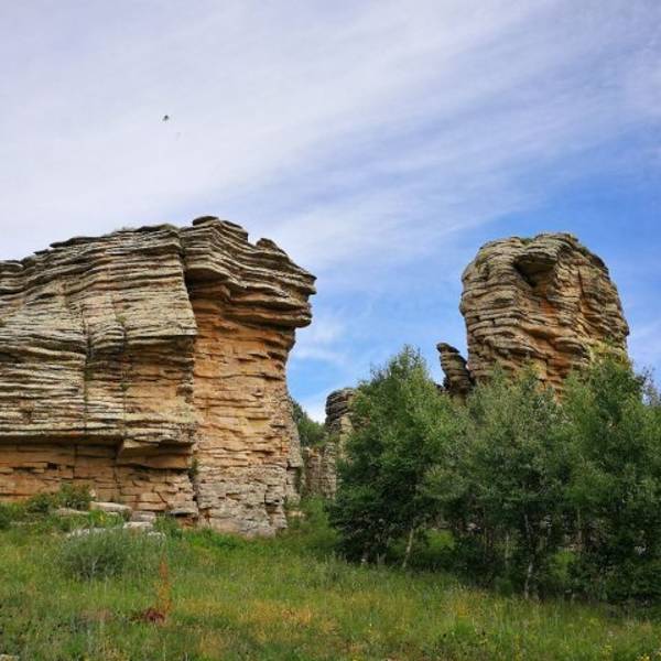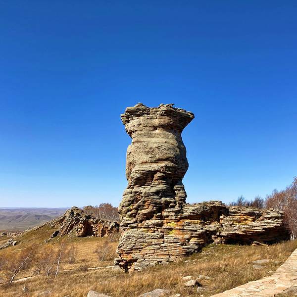 景区...也叫克什克腾石阵,阿斯哈图是蒙语 “险峻的岩石” 的意思。石林在较为平坦的丘陵地带,达达线的尽头,这里的地貌主要是冰盖冰川运动造成的,石阵孤单的分散矗立在丘陵上,看起来像是一层一层石片堆叠起来。