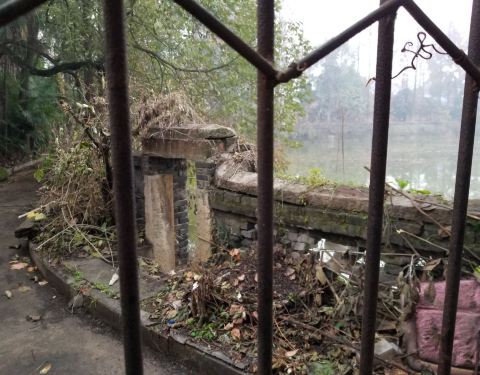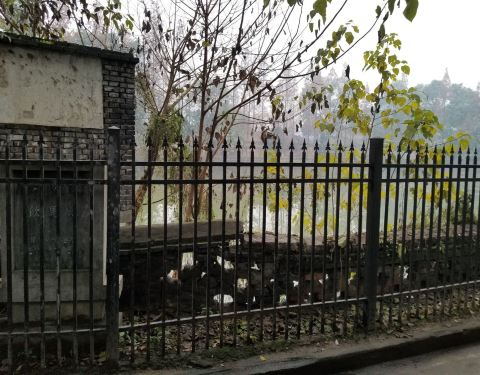 周边是烧烤街,饮马池全封闭,没有入口,从门缝里看了一下,暂时只有一个大池子,边上一圈的围栏,还有饮马池三个字,树叶把路都遮住了