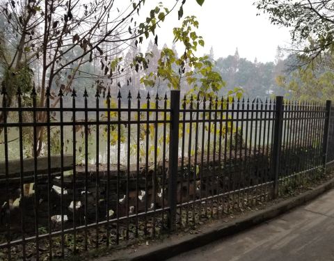 - 饮马池全封闭,没有入口,从门缝里看了一下,暂时只有一个大池子,边上一圈的围栏,还有饮马池三个字...