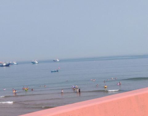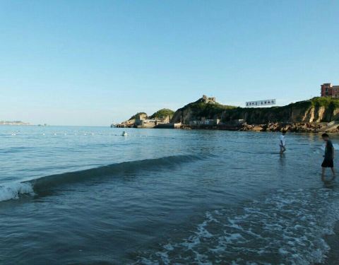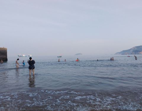 沙滩比较小。浪花挺多。玩的人蛮多。总是一股鱼腥味飘来