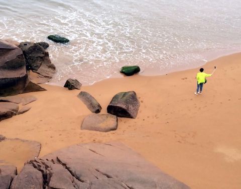 网上宣传绝对虚假,哪有什么碧海蓝天,哪有什么细腻沙滩。沙滩上大石子和生活垃圾到处都是,根本不能赤脚。本来海水还算蛮清澈的,但当清澈的海水和水里的生活垃圾不时飘过你脚面,那感觉你自己应该清楚。