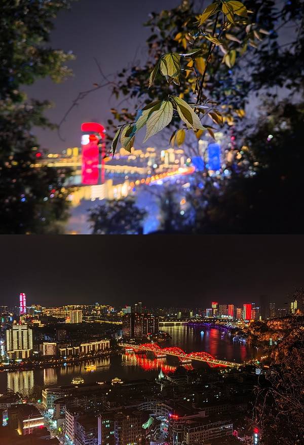 晚上的和白天的 晚上确实挺美 但是爬山下雨就好不要去, 楼梯超滑的 今天不小心摔了一跤