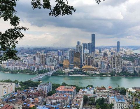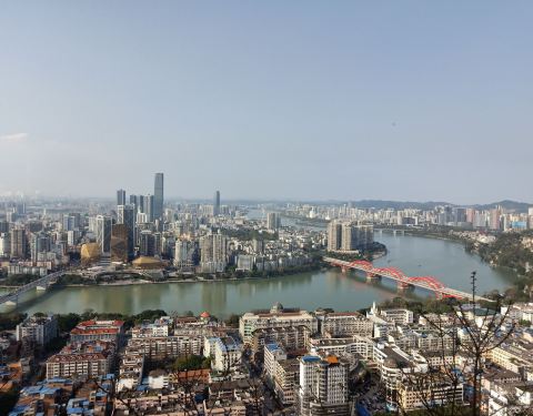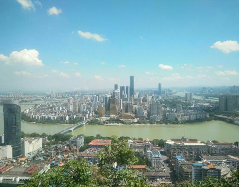 这也是个非常值得看柳州美景的地方,我是中午来的,太阳比较大。这座山不高,海拔200多米而已,认真爬山的话,大概二十多分钟就上去了。柳州的柳江很美!风景也很美!在这座山上拍照是个非常明智的选择