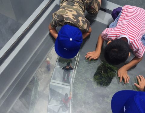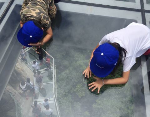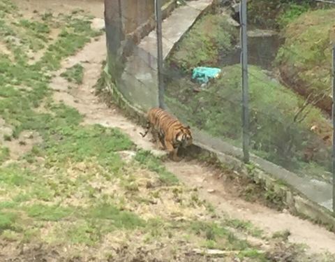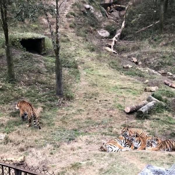 玻璃栈道上的景色很美,高处的风景总是令人心旷神怡;老虎的懒惰性第一次见识到,还挺有意思的